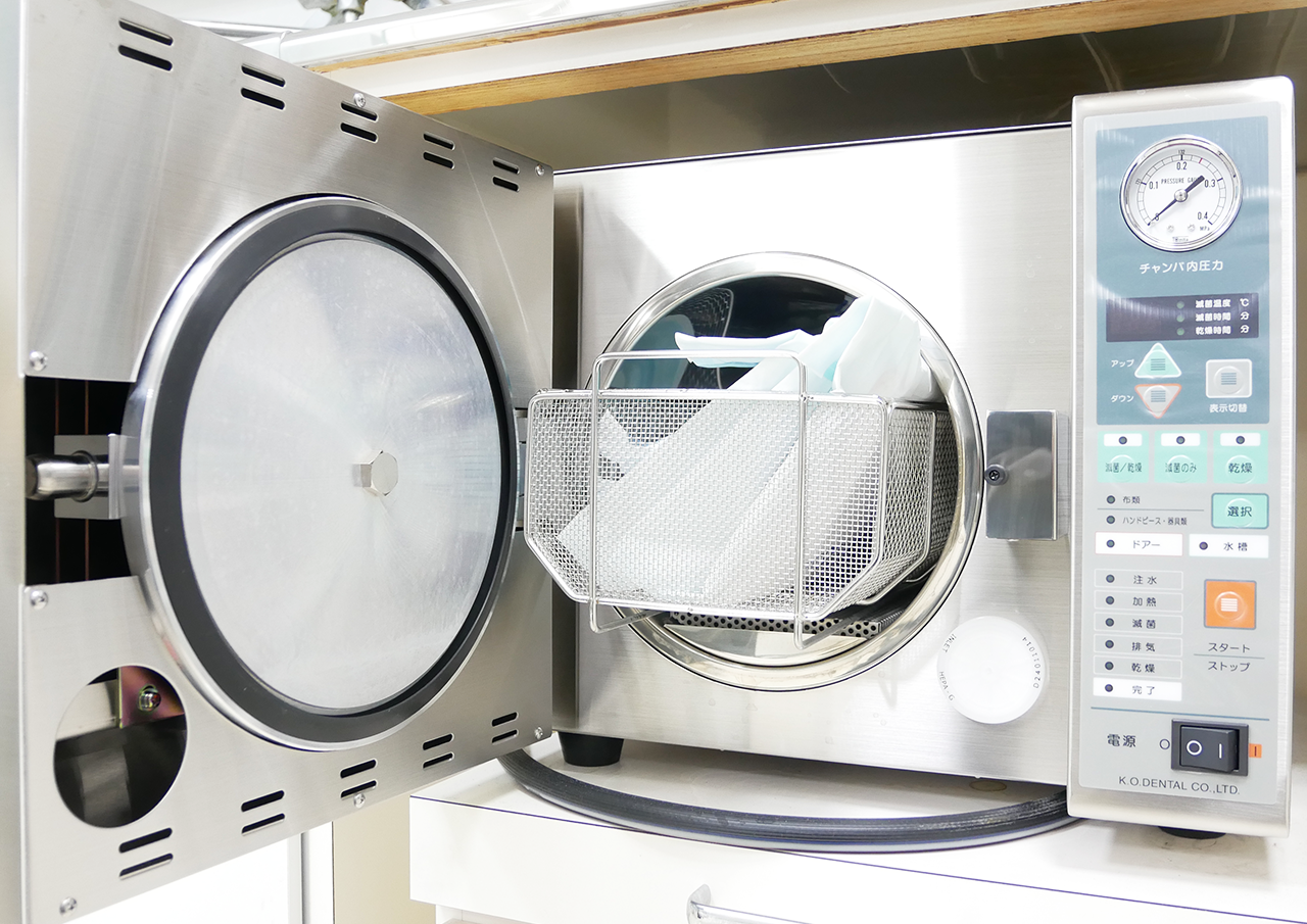一度使用した器具は患者さんごとに取り換え、使用後は滅菌器で洗浄・消毒・滅菌をしっかり行っています。それぞれの器具に適した滅菌器を使い分けて感染リスクを抑え、安全性の高い診療環境を整えています。